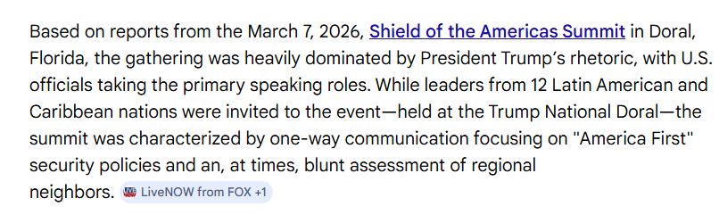 Trump’s assembly of leaders, the Doral 12, reads more like the cowed and corralled who gathered to endorse an agenda of American hegemony labeled Shield of Americas.