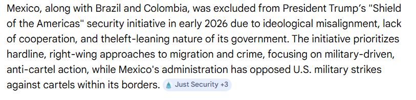 Being unable to have a working relationship with the leaders of countries in your “backyard” — Mexico, Brazil, Columbia – the ones presenting the greatest challenges to what the shield purports to represent, verifies Trump’s fear of push back and dialogue, as opposed to the monologue of the Shields foundation, per reports.